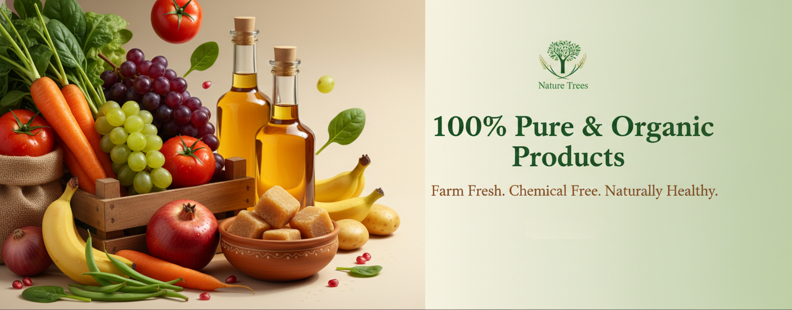 At Nature Trees, we carefully source certified organic vegetables, fresh fruits, and high-quality grocery essentials directly from trusted farmers and cooperatives. We focus on sustainable farming practices that protect the environment while ensuring you receive safe, chemical-free, and nutrient-rich products. From farm selection to store shelves and home delivery, we maintain strict quality standards to preserve freshness and purity. Our mission is simple to make healthy, natural living accessible and affordable for every family.